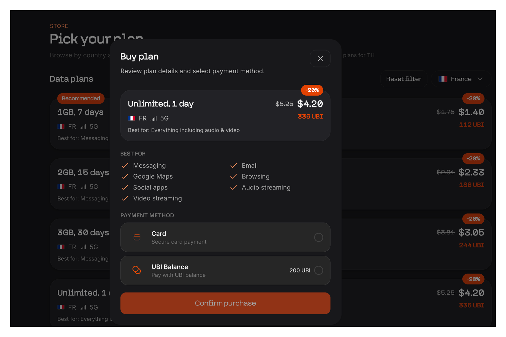 UBI Credits: Earn credits when you create an account and log in. Your signup credits can be used toward your first eSIM plan, so new users may get coverage free. When someone you refer makes a purchase, you earn a one time 500 point bonus and 20% of their points, ongoing.